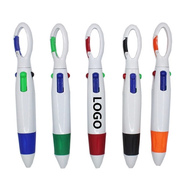 It is made of ABS.Carabineer Ballpoint Pen comes with carabineer on the top, this ballpoint pen come with four different inks for any interests including red, green, blue and black inks. This four color retractable pen functions as a carabiner and can be attached to your keychain or book bag for easy access. Bring this to your next trade shows with your logo printed on the barrel.Feel free to contact us about the logo!