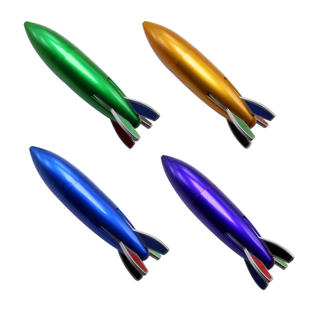 Your customers, employees and vendors will be over the moon when you hand out these awesome rocket pens! Each pen is plastic, measures 5" x 0.82", and ready to launch your branding efforts into the stratosphere. Four colorful fins let you choose red, blue, black or green ink. Add your business logo or message to create a stellar premium for space enthusiasts, science fairs, airlines, science-fiction film screenings, or anywhere your customers have their heads in the clouds