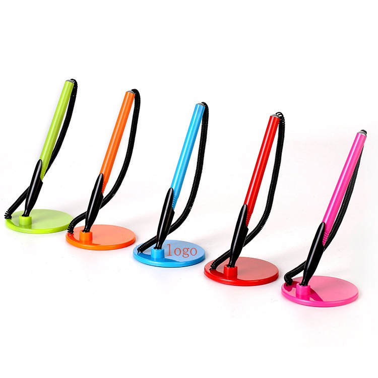 This counter pen with big round stand is mostly used in bank, hotel, office front desk, or anywhere need to survey lots of people. There are double faced adhesive tape under the stand to fix the holder on the desk. Large imprint area for your company message