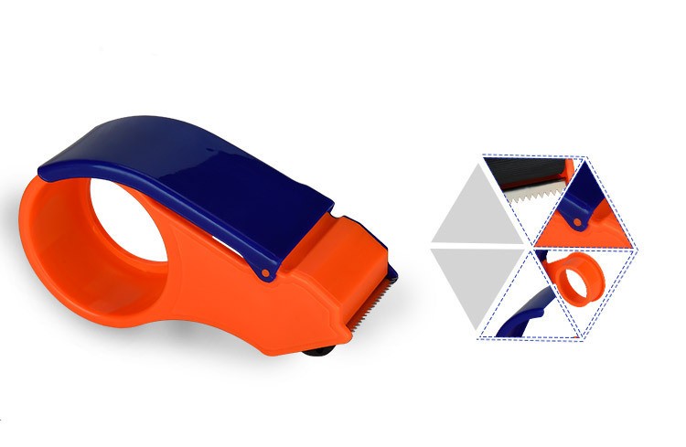 The plastic tape cutter is made of plastic and metal material. cutter only . It's usually used in office. It is good for width: 2" fit for tape. Custom logo can be print on it.(OVER SEA PRICE BY VESSLE