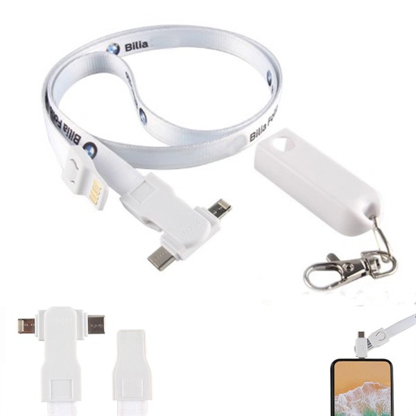 3 in 1 USB charging cable lanyard can be used in workplace or trade show . Metal lobster clip makes it easy to attach an ID badge the multi-function connectors that are compatible with multiple digital devices. Simply press the button on either side of the clip to release the charging cable and connect to a powered USB hub to charge your devices.