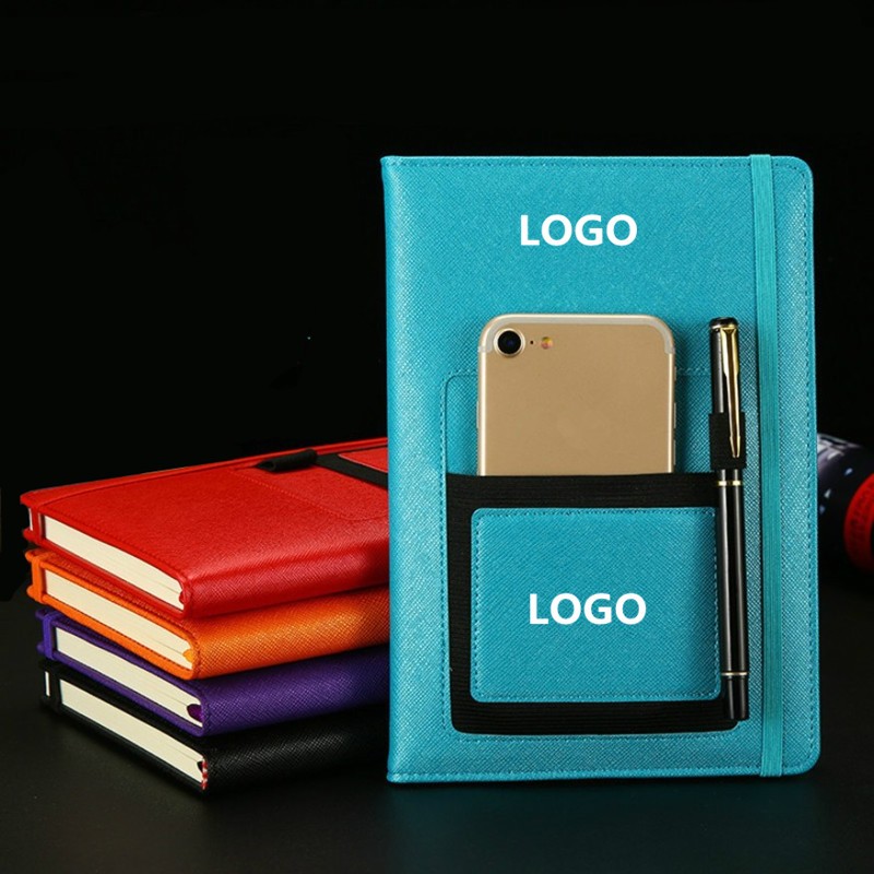 Use a combination product like this journal with phone pocket to reach your target audience! It measures 8 1/4"x5 7/10" and is available in a handful of bright and eye-catching product colors .This PU cover journal is featuring elastic smartphone pocket and elastic pen holder (without pen) on front cover. Includes approx. 80 ruled sheets of 80G cream paper. Write your next promotional success story by adding a customized imprint.