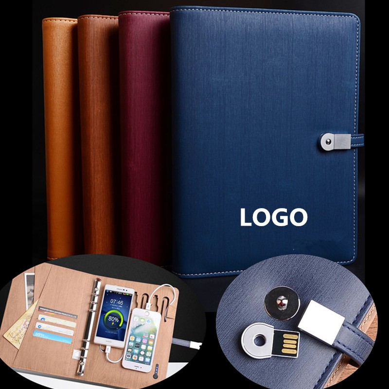 Portable office with the features you expect in an executive tech gift but for less than anyone will think you paid. This multifunctional notebook is in the size of 7 7/10"X9 6/10", with a built-in 6000 mAh power bank and an 8 GB U disk, 100 pages loose-leaf notebook, have a pen holder, 4 card holders, 2 files holder, and 4 colors for choosing from. Your logo could be imprinted via silkscreen, hot stamping or embossing on the cover. It is an excellent high-end gift for your next project.