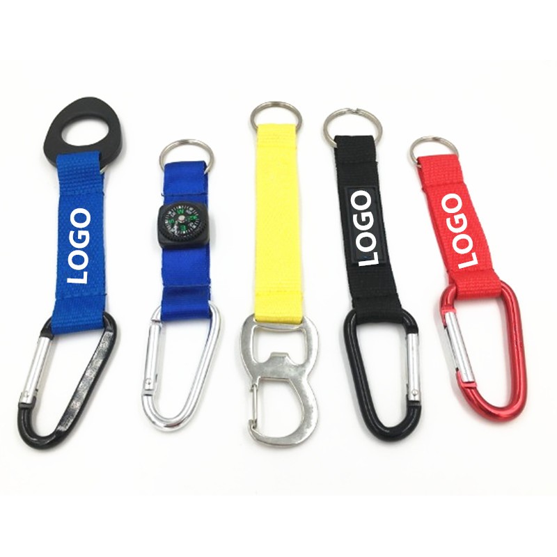This eye-catching item features a secure single-latch metal carabiner, a matching colored polyester strap, a key ring. The carabiner attaches to any backpack or brief case. It hooks to anything. An ideal giveaway for any event, it can be imprinted with your brand logo to make a lasting corporate impression.