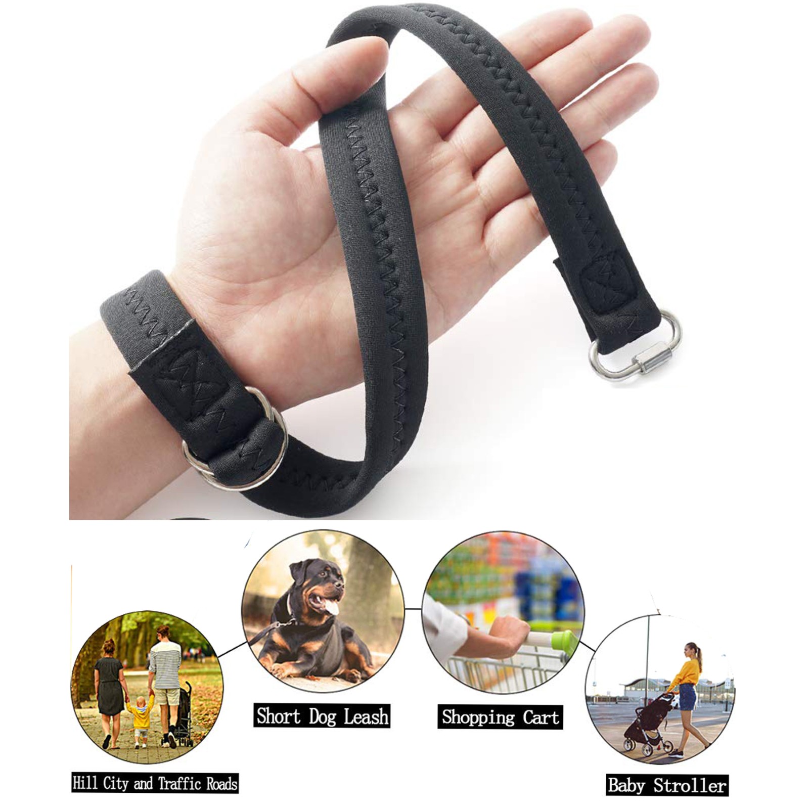 Anti-lost safety, Ensure that the stroller is safe on the sloped road. Effectively prevent pets from getting rid of your hands. Common to any size stroller, Convenient design of the D ring. follow the picture, three steps to complete the installation
