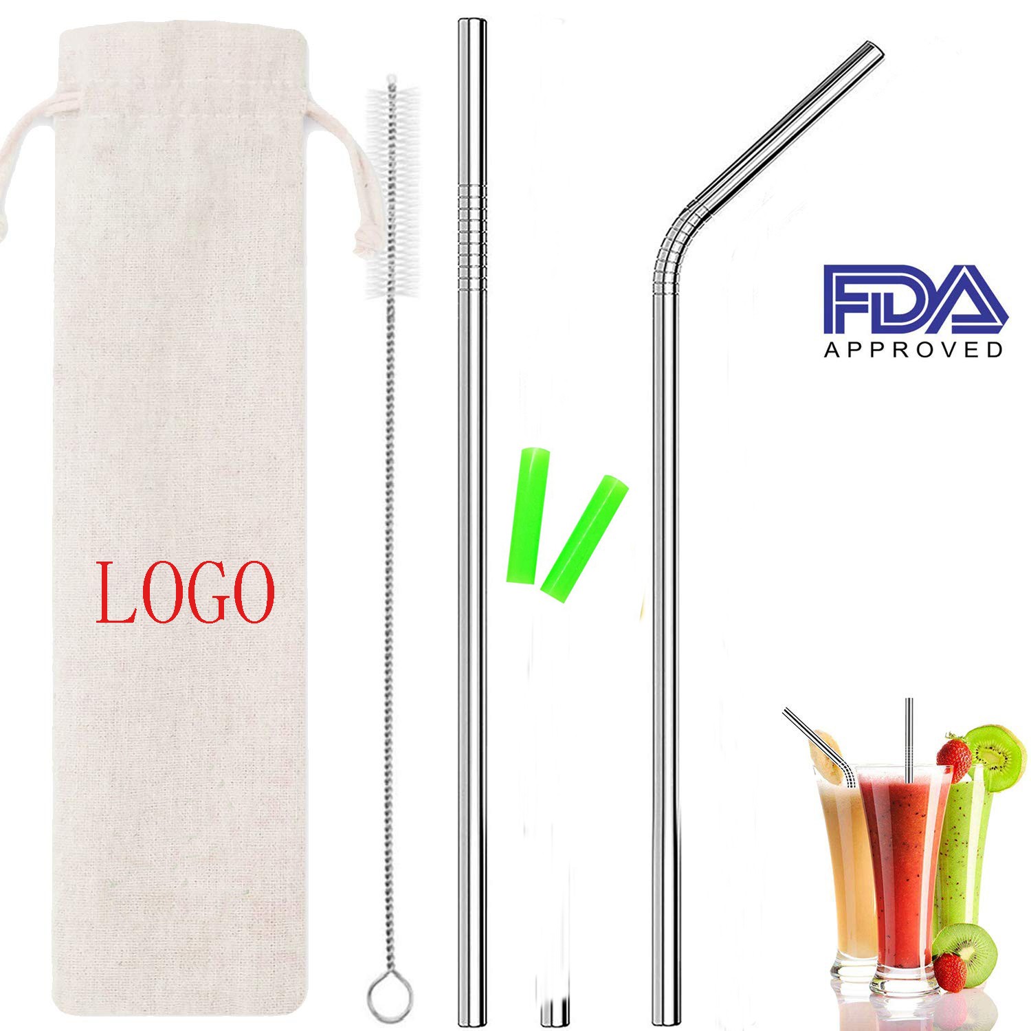 This straw is made of food grade stainless steel. Very durable and resuable. Your logo can be imprinted on the straw by laser engraved method. Great for all kinds of drinking events. 8 1/2" L x 1/4" DIAM. We have many different size of straws for choosing: 8 1/2'' x 1/4'', 8 1/2'' x 3/8'', 8 1/2'' x 1/2'', 10 1/2'' x 1/4'', 10 1/2'' x 3/8'' and 10 1/2'' x 1/2''. The price is base on 8 1/2'' x 1/4'