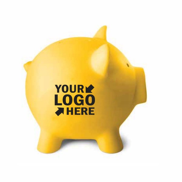 This cute pig is made of plastic and standing tall at 5" x 4".PMS color match acceptable.