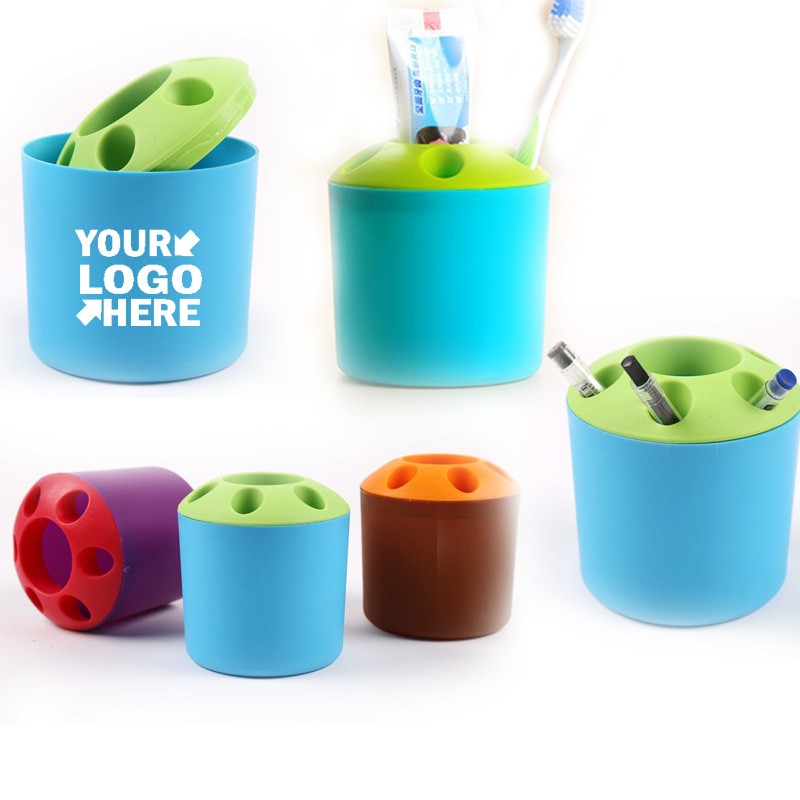 This Toothbrush Holder Seat is made of plastic, it is good to be a penholder ,Toothbrush Holder or storage box.The imprint method is silkscreen.Customization imprint logo accepted. Your best gift for friends.
