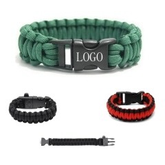 The Bracele is made of Paracord, Plastic, Polyester. Imprint size is 1"*1/2".And the Product size is 9 3/4 " x3/4 ".This basic paracord bracelet is an ideal item for outdoor sports.Customize with a screen-printed imprint of your company name or logo and more to increase brand exposure on a desirable gift or handout.