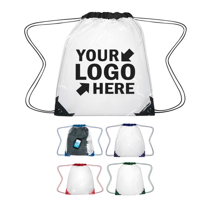 The size is 12’’x12’’. Give your brand a better chance at getting noticed with this clear drawstring backpack! Use our silkscreen imprinting method to add your company name or logo and make this the bag that everyone uses at the next tradeshow!