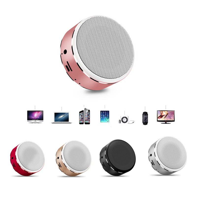 Round metal Bluetooth speaker. Easy to connect to most devices through Bluetooth . Includes USB charging cable and rechargeable battery. Perfect For Your Home, Office Or Outdoor Activities.