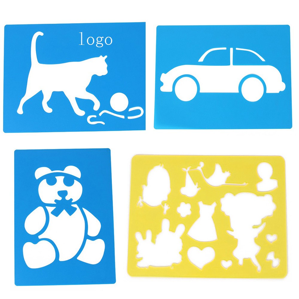 Stencil made of plastic in green, neon pink, true yellow, royal blue, ocean blue, sunburst orange, purple pizzazz, red, gray or white. 4 .9" x 7.8".