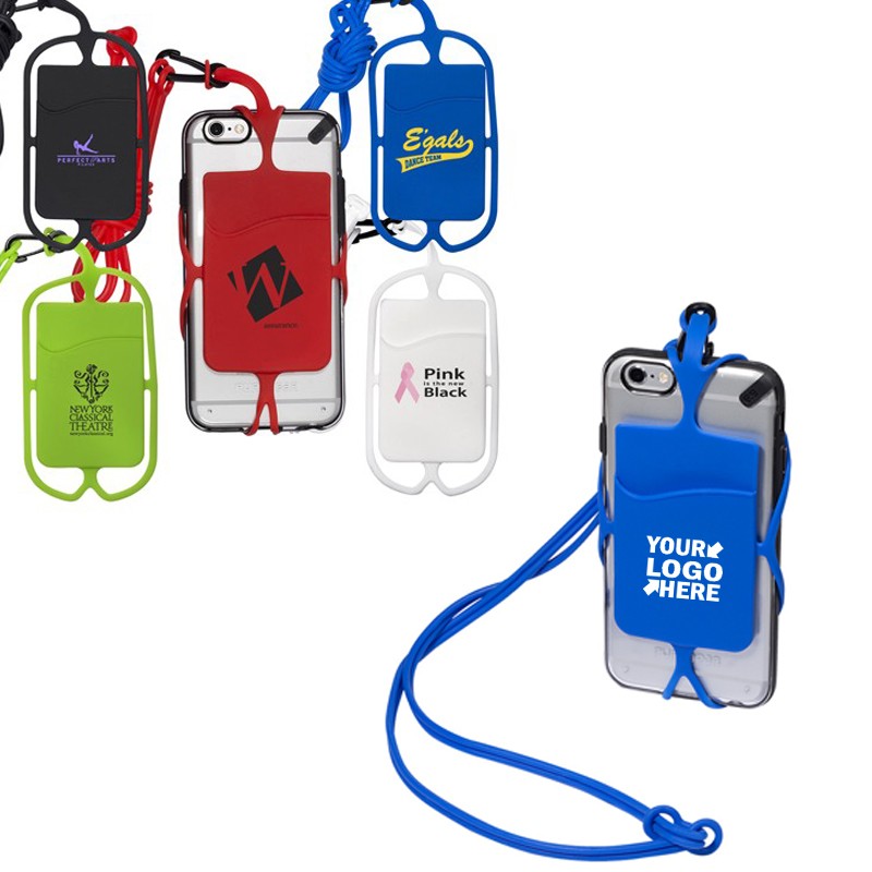 Patented silicone pocket with detachable lanyard. Exclusive! Patented silicone pocket with detachable lanyard. Works with most mobile phones. Pocket doubles as wallet and can be used with or without lanyard. Can hold credit cards, driver's license, business cards, stylus or other small personal items. An ideal giveaway for any tradeshow or convention, it can be customized with an imprint of your company name and logo.