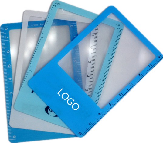 Credit card size paper thin magnifier measures 3.34"*2.11". Large imprint area. Put your contact on to become a business card. 3X magnification. Ideal for reading books, restaurant menus, labels, maps, etc. Great gift for senior, travel and self promo.