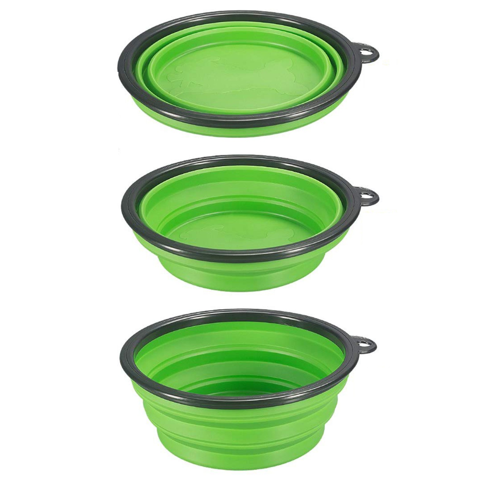 Non-Slip collapsible dog bowl set great for travel dog bowl, pet travel bowl and cat food bowl. The Bowls include color-matching carabiners clip it or collapse it to your backpack, purse, dog travel crate, dog training leash or collapse flat for your pocket, stroller, glovebox and more. Terrific pet supplies for dogs water bowl or dog travel bowl