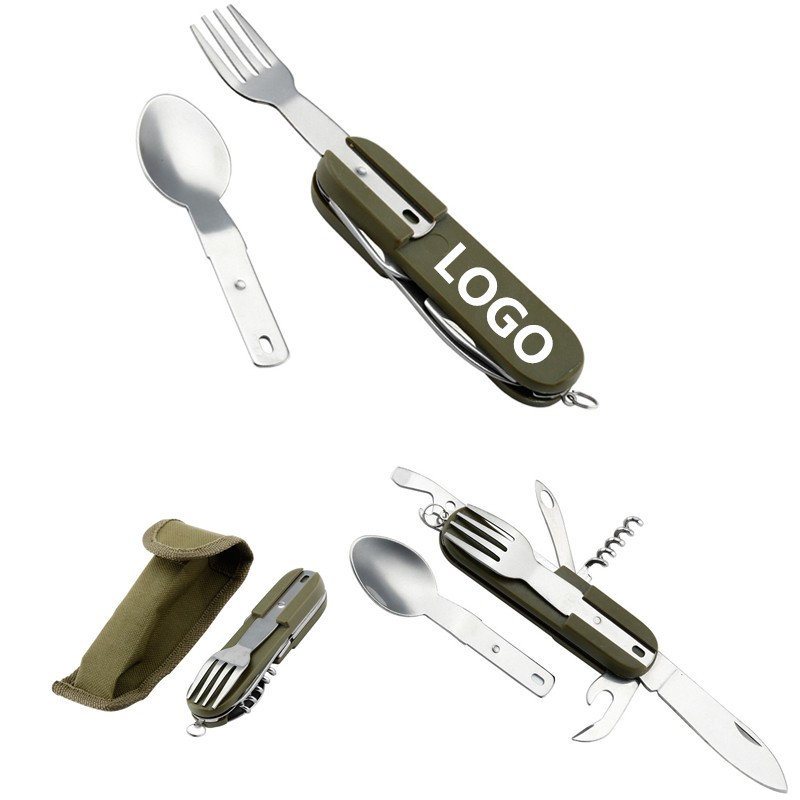 This Portable 4 in 1 Folding Tableware is made of stainless steel. It can function as spoon, fork, knife and bottle opener. Foldable design can save much space for your pack, so it is very convenient to carry. It is ideal for outdoor activities as camping trips, family picnic, BBQ and also indoor dining. Add your brand for the exposure you're looking for!