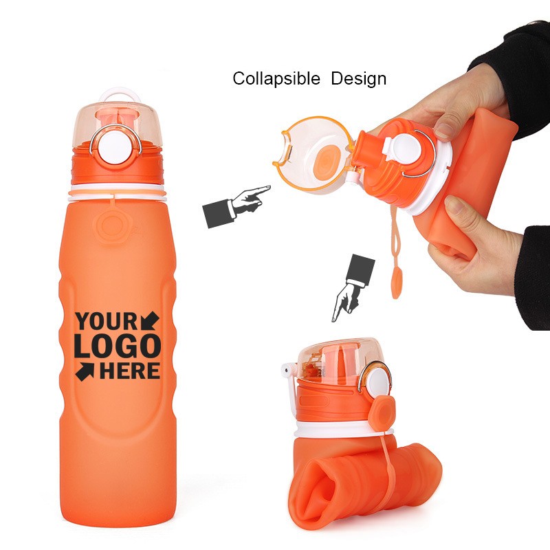 The water bottle is perfect for any occasion! Suitable for hiking, sporting events, the gym, and travel! Save tons of space for in totes and coolers. It measures 5 1/2” when expended and 10”when collapsed. It is leak proof and shockproof. 100% FDA and LFGB approved food-grade silicone. Perfect gift for you to send your clients.