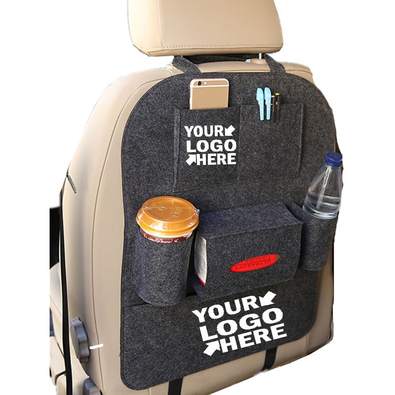 This car seat back storage bag is made of woolen felt. It has 6 pockets and 1 napkin pocket. Convenient to use and easy to install in any vehicles! The triple safety catch sits securely, also the lower part does not hang loosely as with many other backrest pockets. Keeps your vehicle's interior well organized. You can wash it when it gets dirty. Not shrunk, not fade. It is perfect for your car seat.