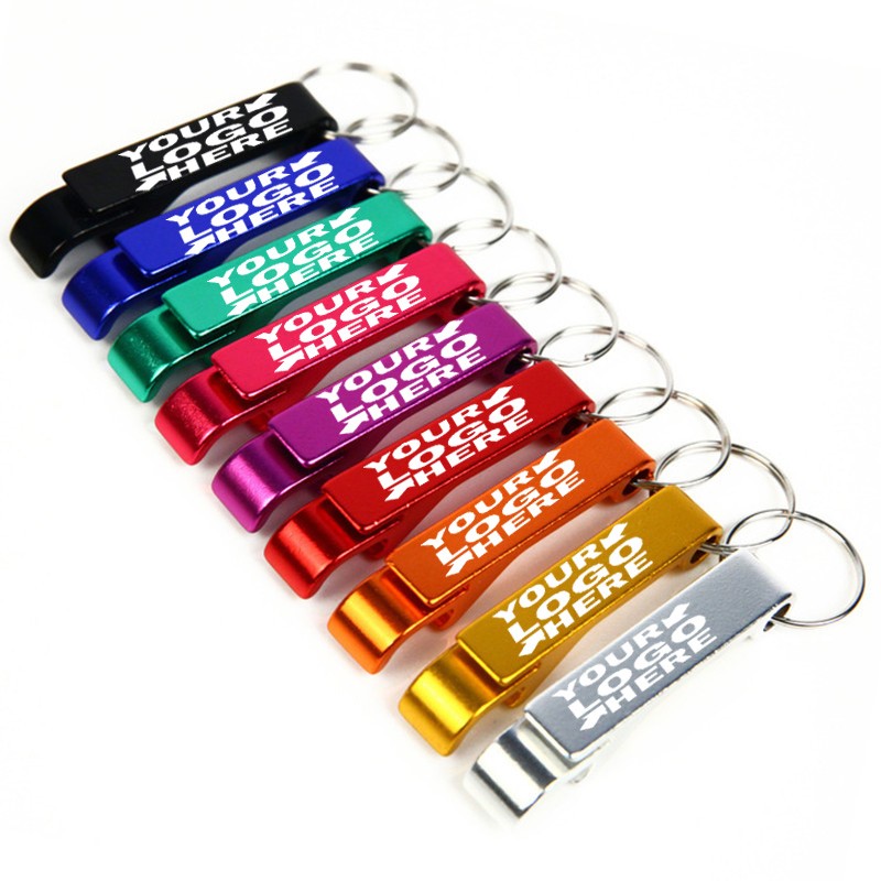 This unique design bottle opener is made of aluminum alloy. The size is 2 3/10"x6/10". Each comes with the ring so it can be attached to you keychain if need. It is a great way to break into your next advertising campaign. It makes a great gift or giveaway at trade shows, liquor stores or beverage marketing events. Multiple uses can appeal more new clients to broaden your business road. Your business logo and name can be customized