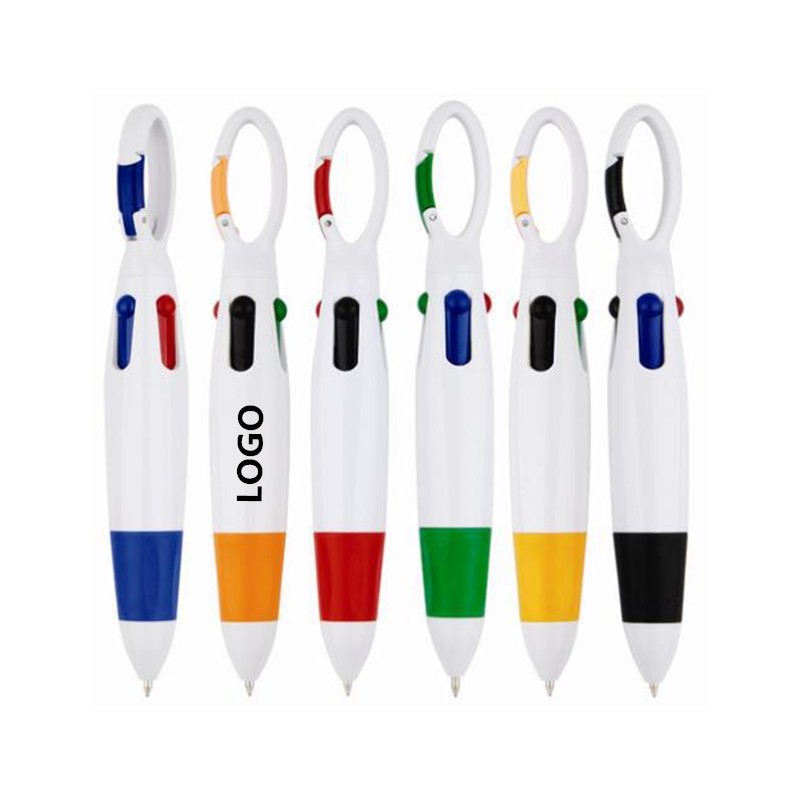 Hang on tight to your prospective clients with this 4-Color Clipper Pen! The carabiner clip pen comes with blue, black, red and green interchangeable inks for an exciting writing experience. You can add your company name, logo and advertising message to it so that customers can spread your brand all around town for maximum impact. Wherever they go, your promo pen won't be far behind since it can be attached to purses, bags or even belt loops. This marketing tool will stay with them all day!