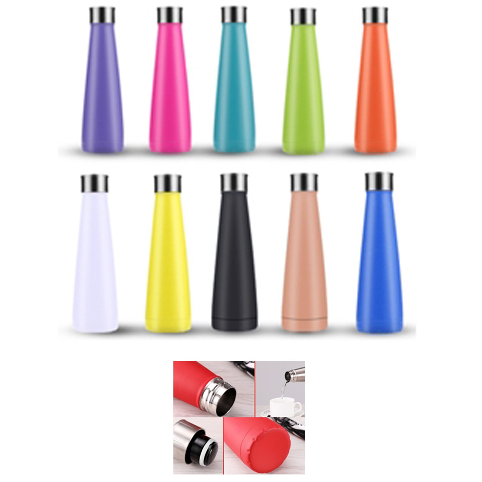 Double wall vacuum insulated water bottle enables you to enjoy your hot or iced beverages all day long. Light weighted but durable quality. 16 oz capacity is compact easy to carry for work, school,outdoor traveling camping yoga,picnic