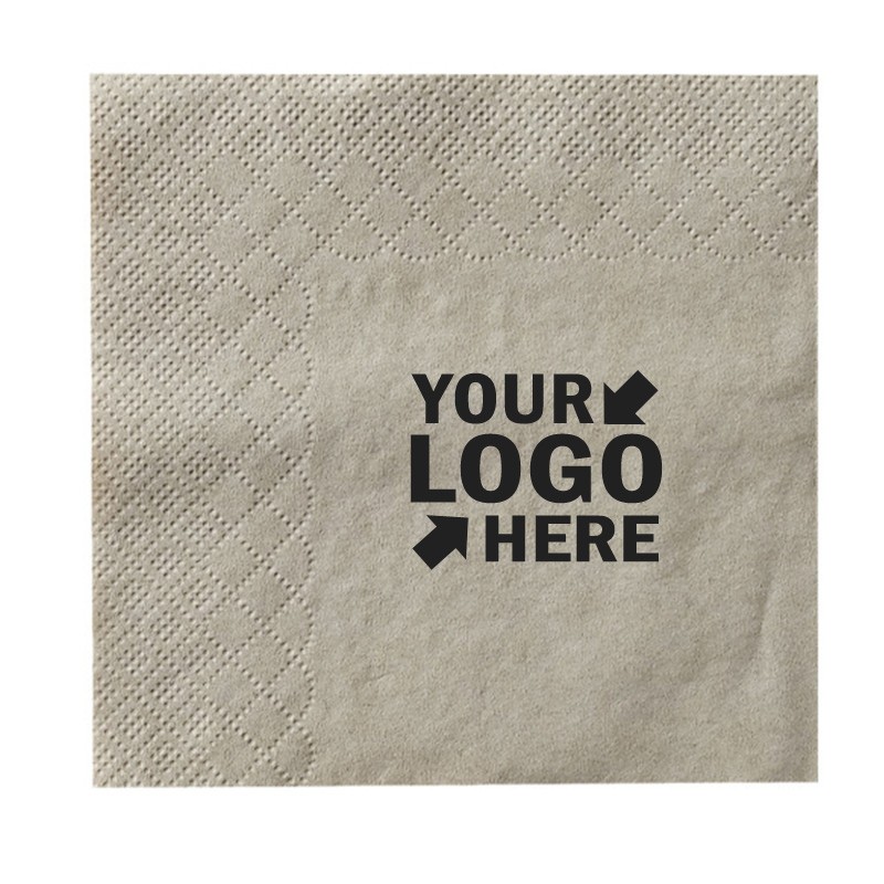 Made from recycled materials and measures 10" x 10" when fully opened. A great promotional product for banquet halls, country clubs and restaurants they'd also be a perfect accent for corporate picnics and other celebratory events. Showcase your company name or logo on these folded 2-ply natural color beverage napkins to promoting your business.