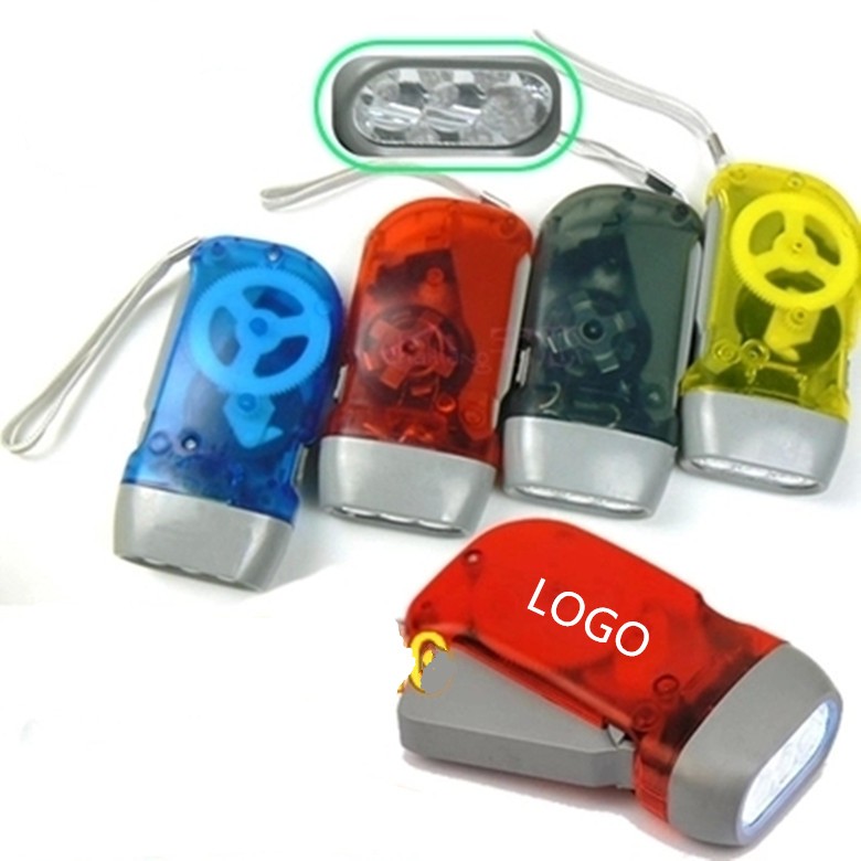 Emergencies happen so make sure you and your customers are always prepared with this handy dynamo flashlight Measuring 3.92"*1.57"*0.75“, it features a wrist strap for added safety and convenience three bright LED lights. Powered by insert 3AAA batteries squeezing the handle . Perfect for outdoor promotions, customize with your LOGO imprint and shine some light on your brand!