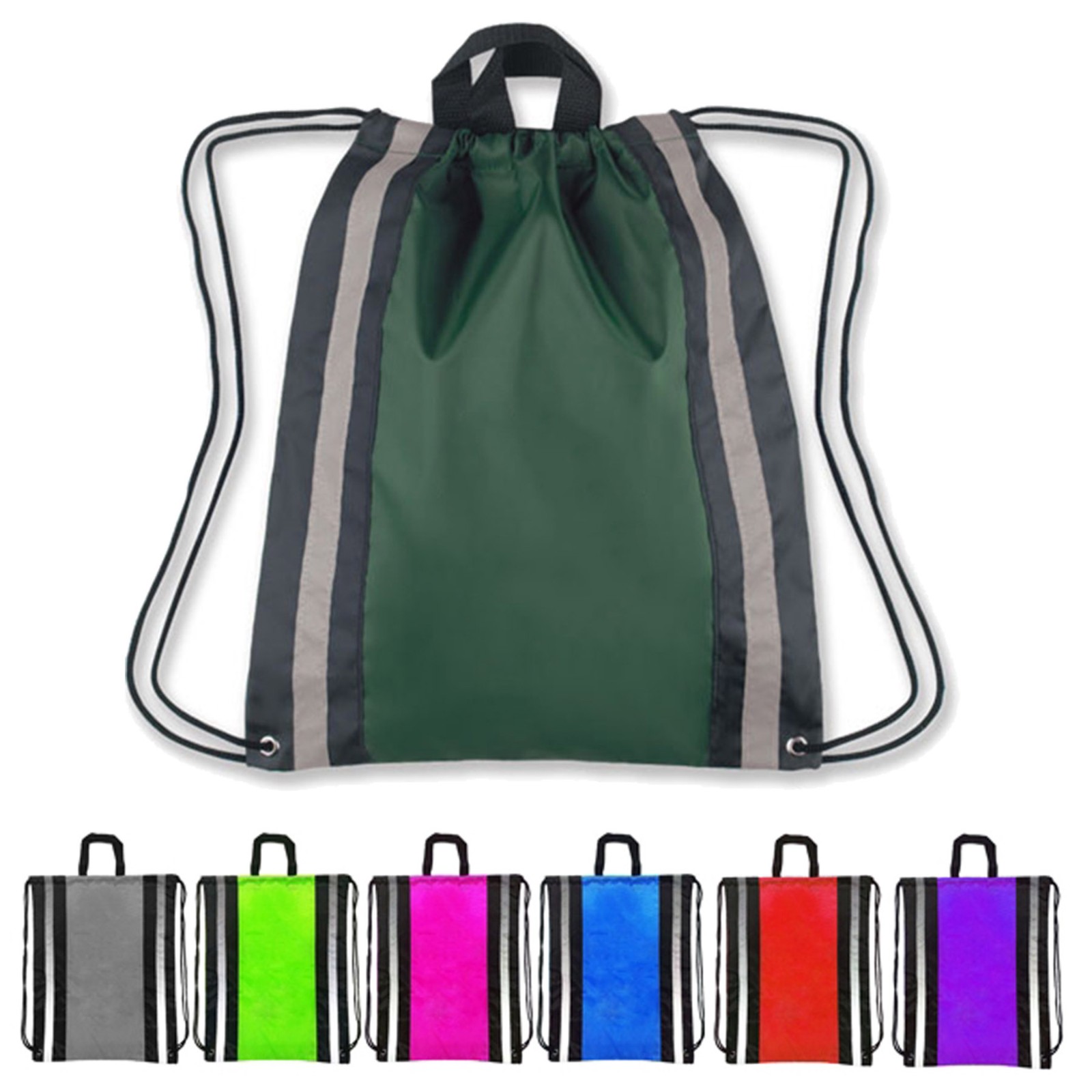 This is a great sports pack for promoting your athletic gear or company! It is made of polyester, has two carrying handles, reinforced eyelets, and a drawstring closure. With its reflective panels, it also makes a great safety tool for kids, walkers, and bikers, increasing their visibility to cars at night.
